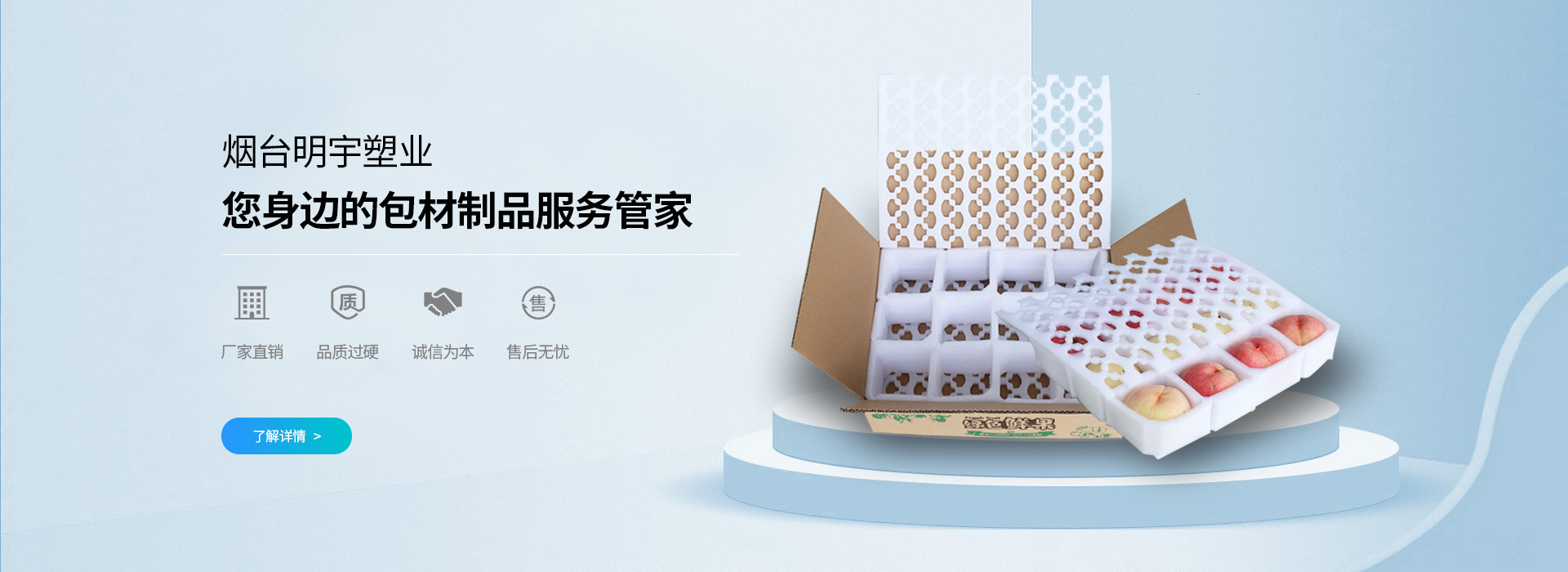 煙臺(tái)明宇塑料包裝廠成立于2012年8月7日,是一家生產(chǎn)(chǎn)塑料新穎包裝制品的企業(yè)(yè)。主營(yíng)煙臺(tái)PE拉伸膜,煙臺(tái)EPE珍珠棉,煙臺(tái)軟泡沫等產(chǎn)(chǎn)品,擁有專業(yè)(yè)的技術(shù)(shù)人員,采用專業(yè)(yè)的技術(shù)(shù)設(shè)(shè)備,配以科學(xué)完善的管理制度,在激烈的市場(chǎng)競(jìng)爭(zhēng)中,我們會(huì)特別注重質(zhì)(zhì)量,服務(wù)和環(huán)(huán)保意識(shí),在全體同仁不懈的努力下,產(chǎn)(chǎn)品深受廣大用戶的好評(píng),我們將攜手共創(chuàng)(chuàng)美好的未來(lái),我們期待著與你的合作!